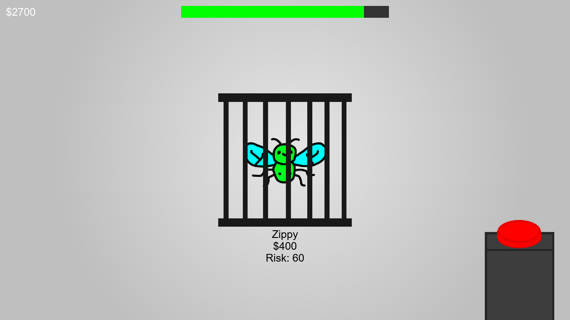 In der button you must press the button when you want to buy a creature or dont for when you dont, each creature has a price and a risk value, the higher the risk value the more likely that the creature will loose value after the purchase, so buy carefully.